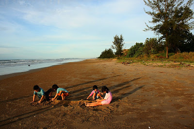 Our most-est favorite beach in Miri ... we spent many high tides evenings and in equal number low tide mornings here exploring the beach with the children.